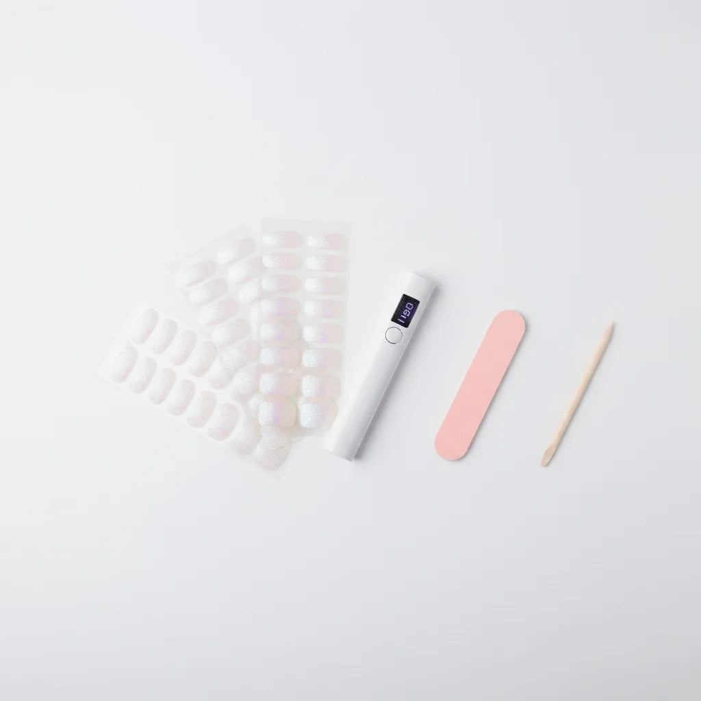 Tout est inclus pour une manucure impeccable : bandes gel, lampe UV, lime et bâtonnet. Zéro stress!