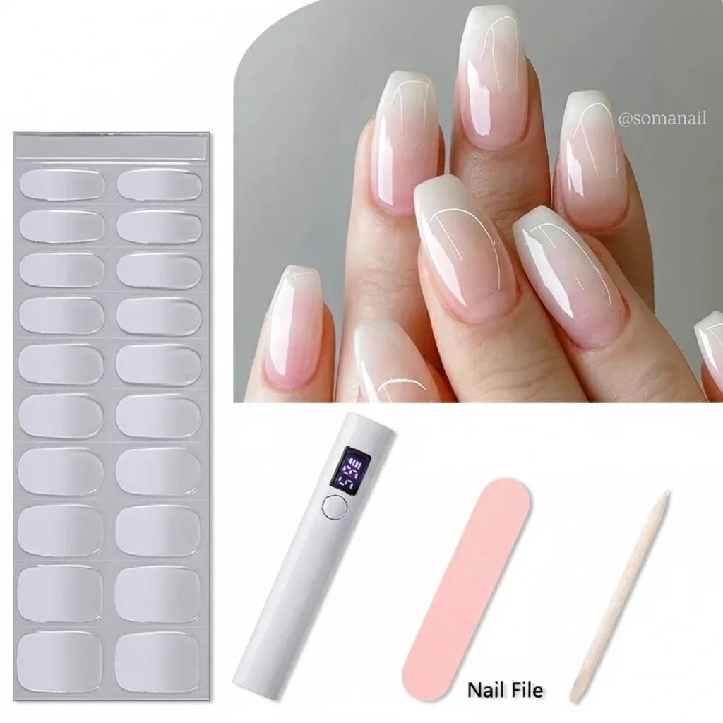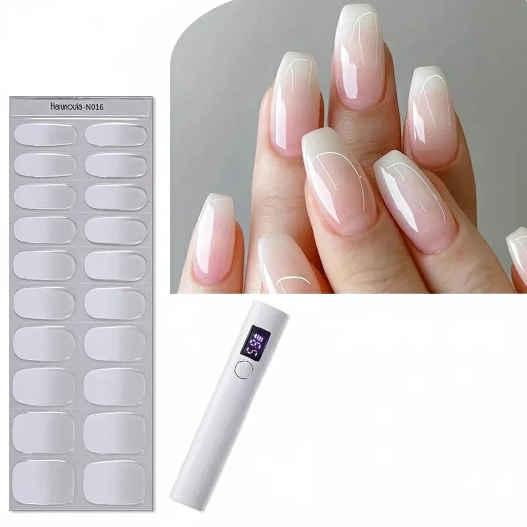 Plus besoin d'être une pro ! Nos strips en gel semi-cuit s'appliquent en un clin d'œil. Polymérisez avec la lampe UV incluse et voilà : une manucure parfaite en quelques minutes, sans bavures ni stress.